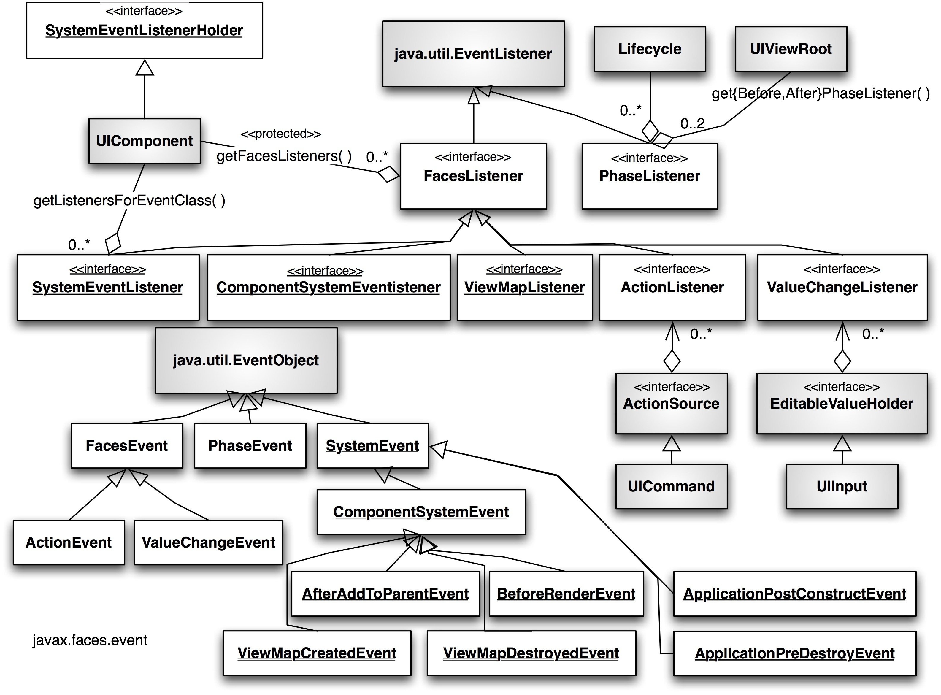 | PhaseListener | An interface implemented by objects that wish to be notified at the beginning and ending of processing for each standard phase of the request processing lifecycle. |