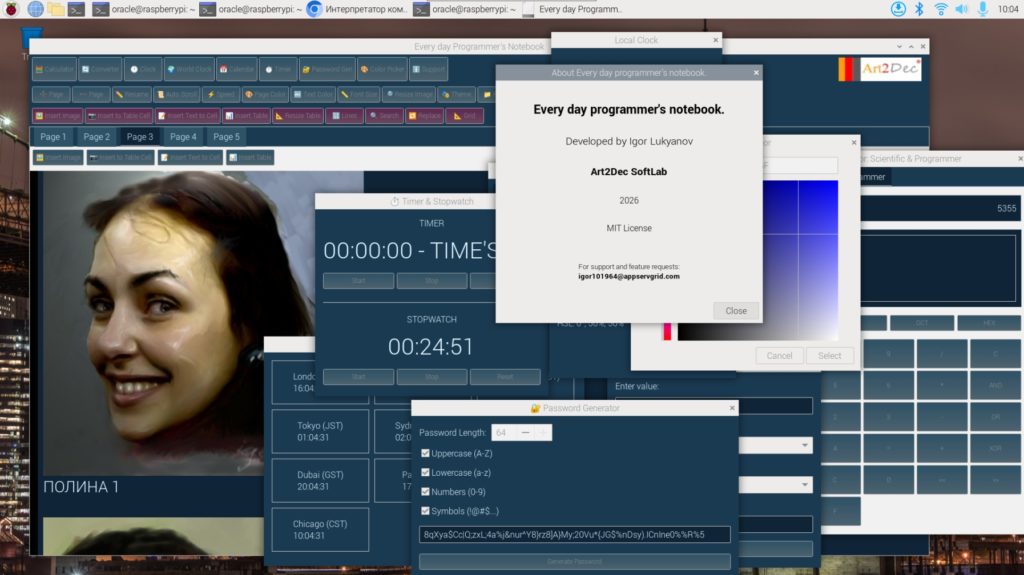 This is not a simple notebook — it is an unified environment for writing, reading, organizing, and presenting your information. Contact info about Everyday programmer’s notebook: Igor Lukyanov, Art2Dec SoftLab, igor_lukyanov@appservgrid.com